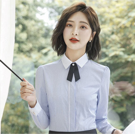 Color: long-sleeved blue striped shirt + collar button, black vest, black jacket + black skirt,